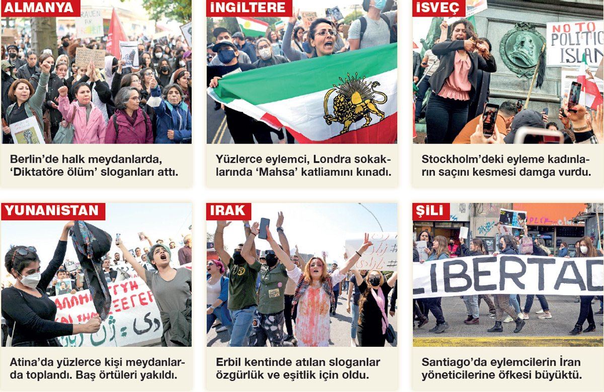 Sokaklarda, “Kadın, yaşam ve özgürlük” sloganları yankılanırken 50’den fazla kişinin hayatını kaybettiği belirtildi. Dünya da bu katliama seyirci kalmadı... Amerika dahil, Almanya, İngiltere,