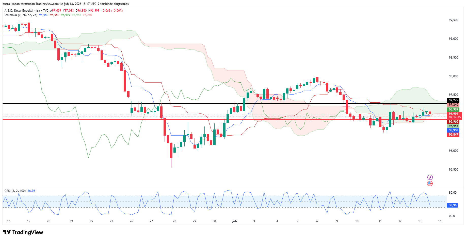 Dolar endeksi kritik veri öncesinde 97,00 puanda bulunuyor. Verinin ardından 96,84 seviyesine geriledi.
