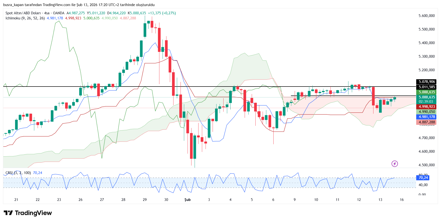 Altın, dün yüzde 3,8 düşüşle 5 bin 69 dolardan 4 bin 878 dolara kadar inerek 191 dolar kaybettirdi. Böylece, son dönemdeki en sert günlük kayıplarından birini yaşadı. Ons altın kritik veri öncesinde 4 bin 960 dolarda bulunuyor. Verinin ardından 4 bin 999 seviyesine yükseldi.