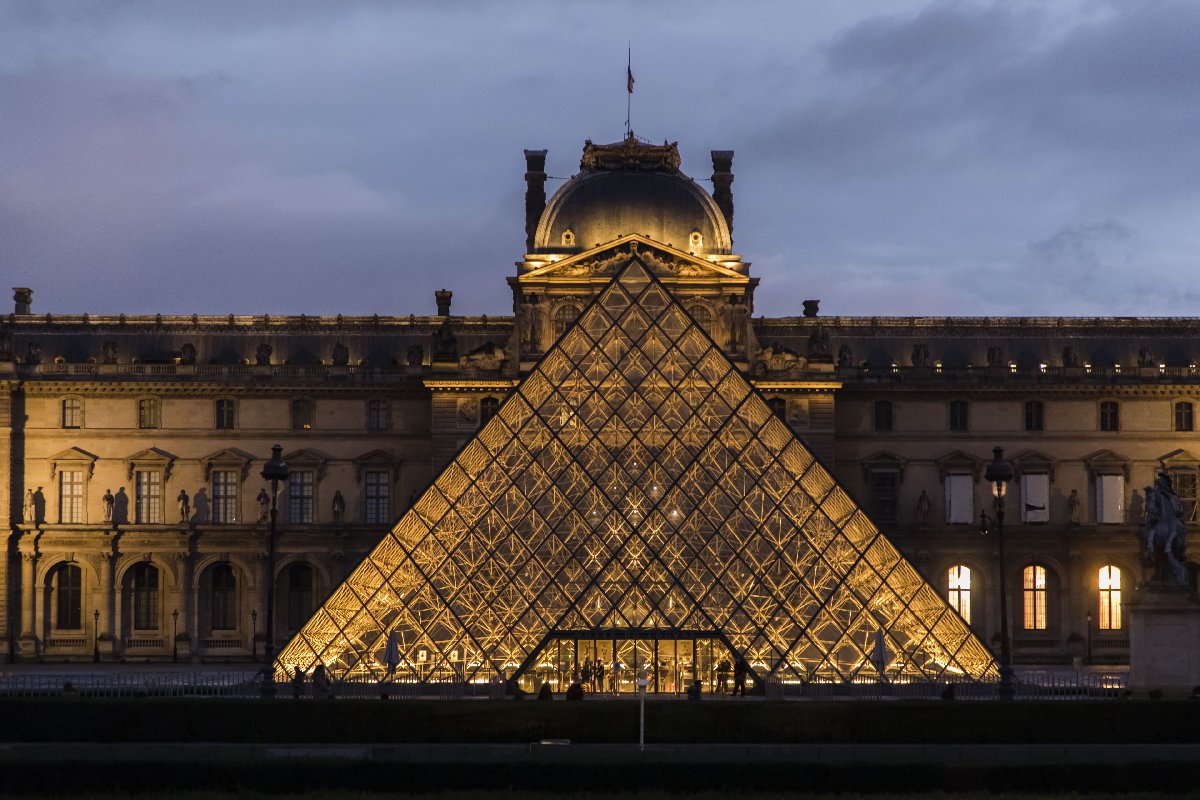 1989 yılında Çinli mimar I. M. Pei tarafından yapılan piramid, güneş ışığının zemin kata ulaşmasını sağlıyor.