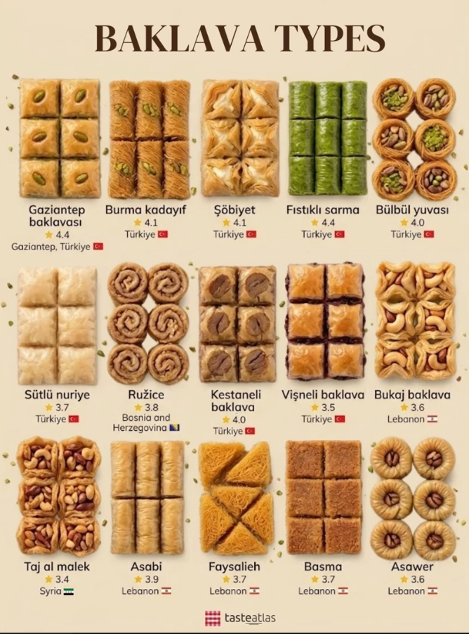 Listede yer alan toplam 15 baklava çeşidinden 8’inin Türkiye’ye ait olması, Türk tatlı kültürünün küresel ölçekteki gücünü bir kez daha kanıtladı.