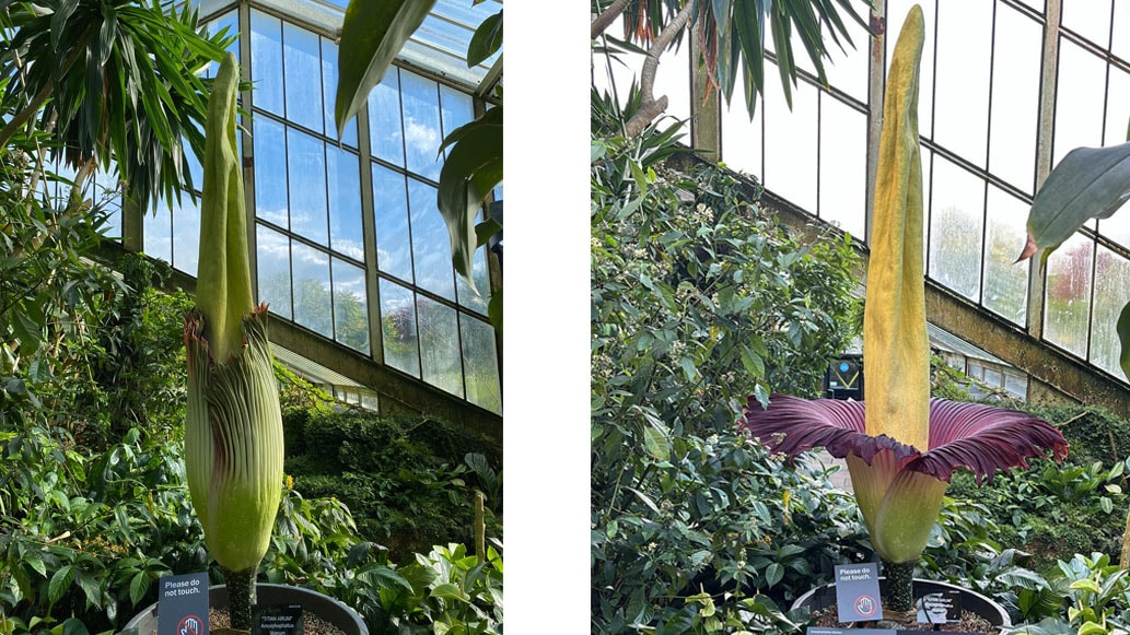 İlk çiçeğini açmak için yeterli enerjiyi yaklaşık 12 yılda topladığı belirtilen titan arumun, geçen hafta çiçek açan diğer titan arumla birlikte 5 yıldan kısa sürede ilk kez iki kere açtığı ifade edildi. Titan arum ve aristolochia goldienanın aynı anda ilk kez açtığı da kaydedilen açıklamada, iki bitkinin polenleri çekebilmek için kötü koku yaydığı belirtildi.