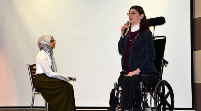 Doğuştan 'Weaver Sendromu' rahatsızlığı nedeniyle boyu hızla uzayan ve 3 yıl önce 17 yaşında Guinness Rekorlar Kitabı'na giren Rumeysa Gelgi, Fizyoterapi ve Rehabilitasyon Zirvesi etkinliği kapsamında yapılan söyleşinin yapıldığı salona, emekli laboratuvar teknisyeni annesi Safiye ve babası biyokimya uzmanı Haydar Gelgi’nin yardımıyla geldi. Öğrencilere yaşadığı rahatsızlığı anlatan Gelgi, 5 yaşında Walker desteği ile yürümeye başladığını söyledi. 15 yıldır aldığı fizyoterapiyi hiç bırakmadan devam ettirdiğini, fizyoterapinin yaşam kalitesini arttıran tek şey olduğunu belirten Gelgi şöyle dedi: