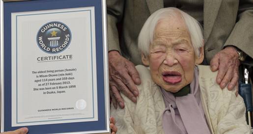 114 yaşındaki Okawa, dünyanın en yaşlı kadını olarak rekor kırdı. Okawa, ''Dünyanın en yaşlı kadını'' unvanıyla Guinness Rekorlar Kitabı'na girdiği için çok mutlu olduğunu ifade etti. Japonya'nın Osaka kentinde bir bakım evinde yaşayan Okawa, uzun yaşamanın sırrının sağlığa dikkat etmek olduğunu söyledi.