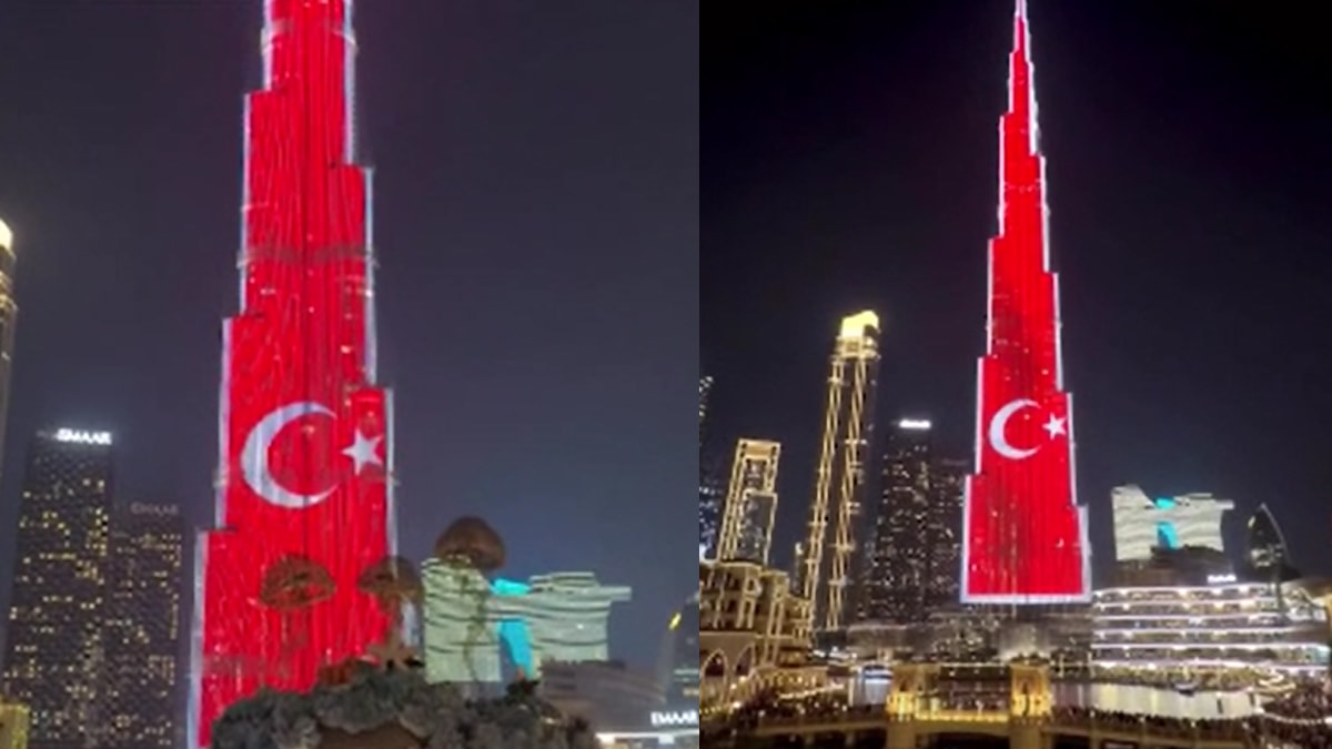 Birleşik Arap Emirlikleri'nin (BAE) Dubai kentinde yer alan dünyanın en yüksek gökdeleni Burj Khalifa'ya Türk bayrağı yansıtıldı ve İstiklal Marşı dinletildi.