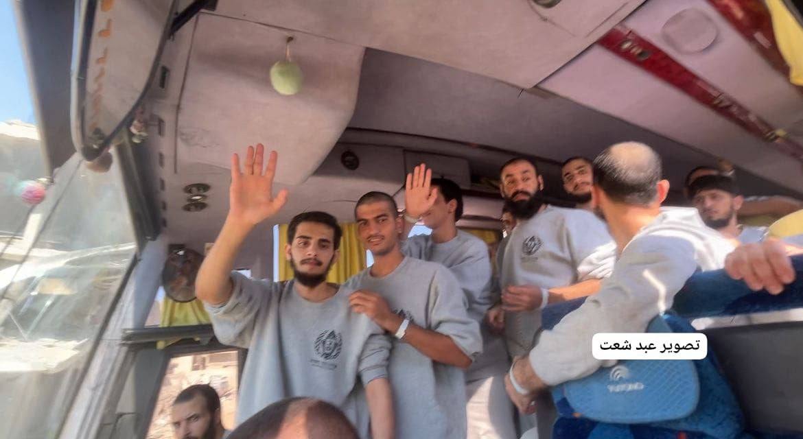 Buna karşılık yaklaşık 1.966 Filistinli mahkum, İsrail hapishanelerinden otobüslere bindirildi. Otobüsler hapishaneden ayrıldı.