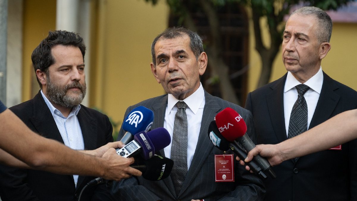 Galatasaray Kulübü Başkanı Dursun Özbek, kulübün Galatasaray Lisesi'nde basına kapalı gerçekleştirilen kasım ayı olağan divan kurulu toplantısının ardından açıklamalarda bulundu. Fotoğraf: AA