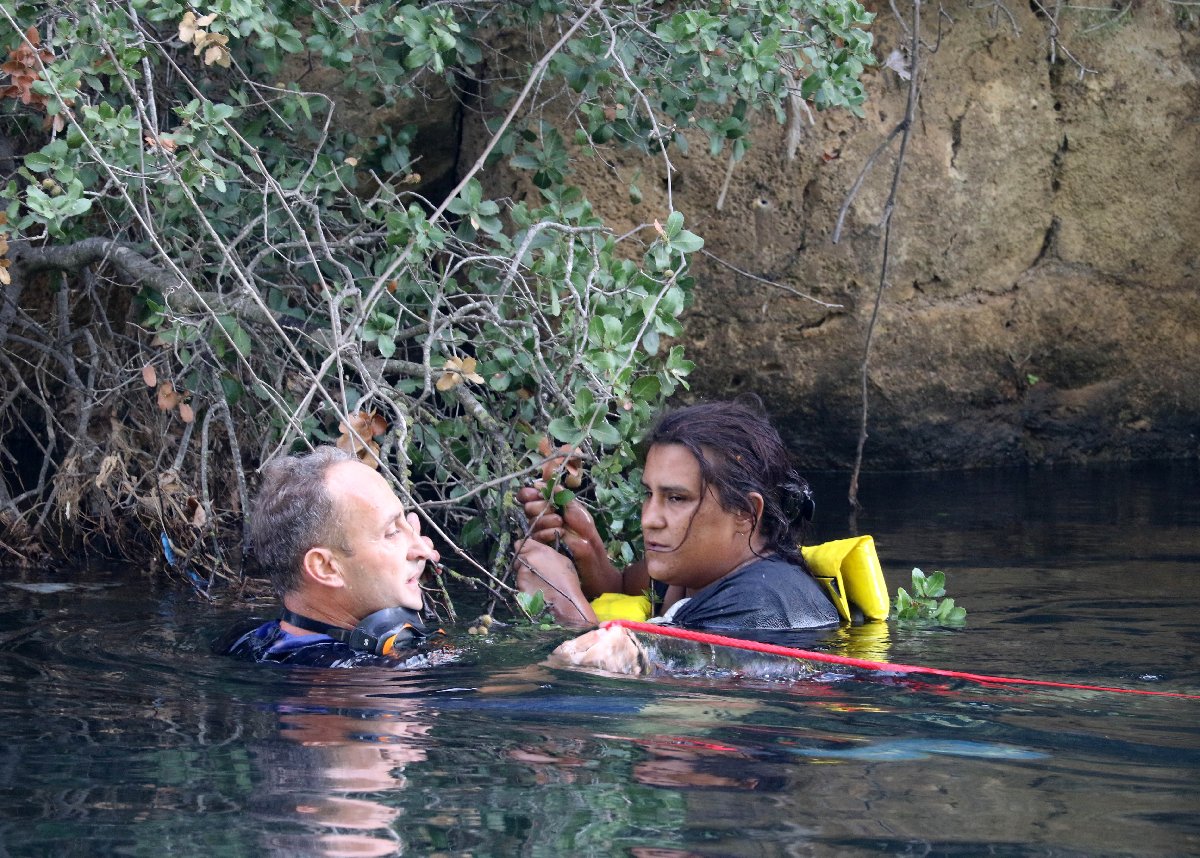 İhbarla bölgeye polis, itfaiye ve sağlık ekipleri sevk edildi. İtfaiye ekibi, kayalık alandan aşağıya indi. İtfaiye amiri beline bağladığı ip ve can simidiyle Esengül Yeneç'in olduğu noktaya kadar yüzdü.