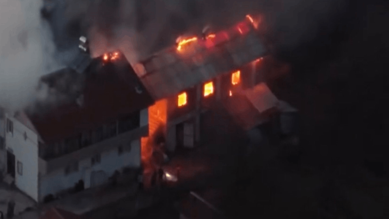 Yangın, itfaiyenin 1 saatlik çalışmasıyla söndürüldü. Yangın anları, dronla havadan görüntülendi. Can kaybının olmadığı yangında ev, ahır ve samanlıkta hasar oluştu.