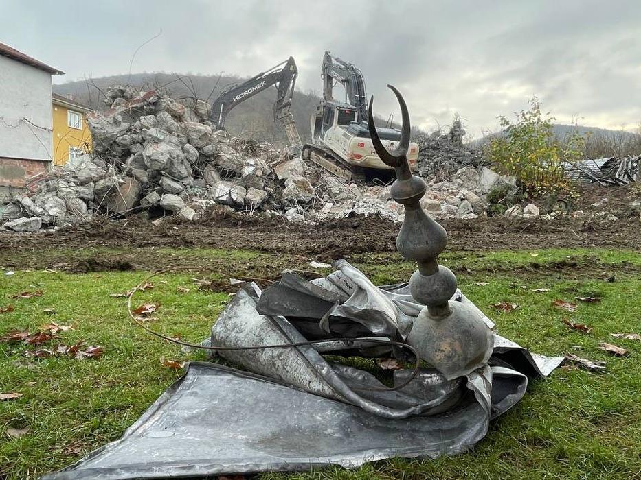 İl Özel İdaresi ekipleri, Çevre, Şehircilik ve İklim Değişikliği İl Müdürlüğü ekiplerinin 24 Kasım'da yıkım kararı almasının ardından İbadete kapatılan cami bu sabah yıkıldı.