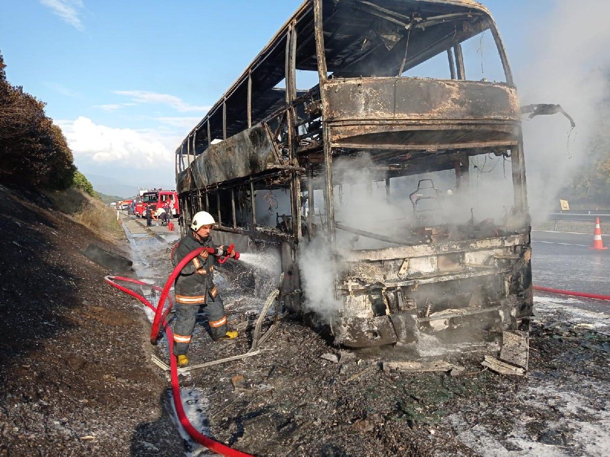 Sürücünün çabaları yetersiz kalırken, alevler de bir anda otobüsü sardı. İstanbul yönü ulaşıma kapanırken, bölgeye gelen itfaiye ekipleri de yangına müdahale etti. Alevler söndürürken, yolcu bulunmayan otobüs ise kullanılamaz hale geldi.