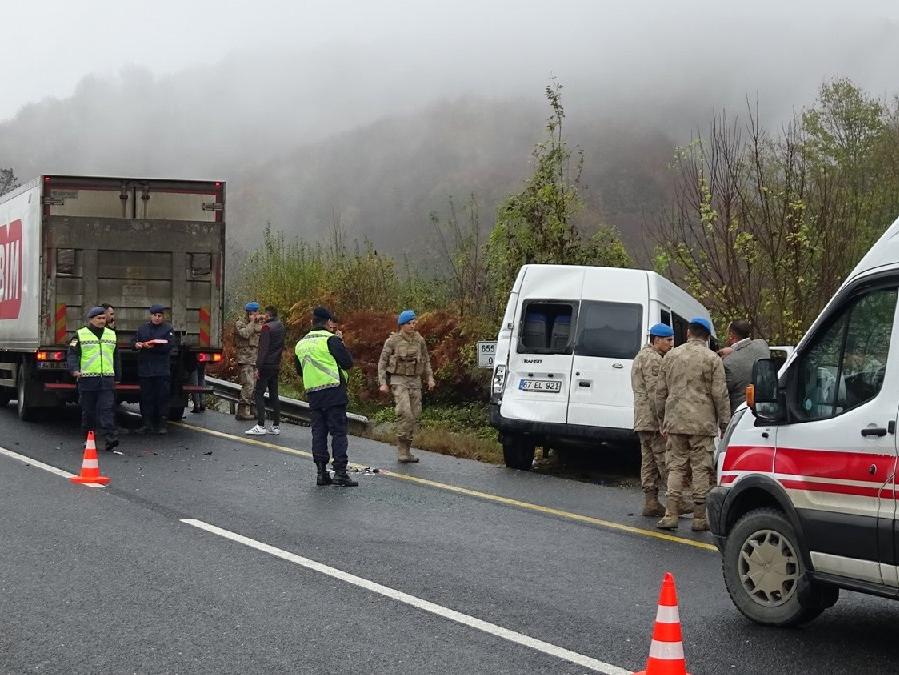 Kazada, deprem bölgesi Düzce'de görev yaptıktan sonra Zonguldak İl Jandarma Komutanlığına gitmek için yola çıkan minibüsteki 13 askerden 6sı yaralandı.