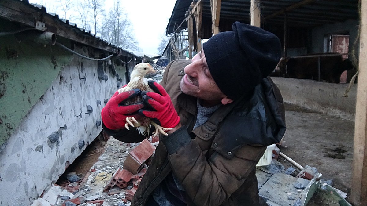 * "50 bin hayvanımız vardı. 20 binini hemen deprem sabahı plan yaptık. Sağ olsun başka bir kümesçi arkadaşımız destek oldu. Bir araba gönderdi, devletimiz de işçi yardımı yapıyor.