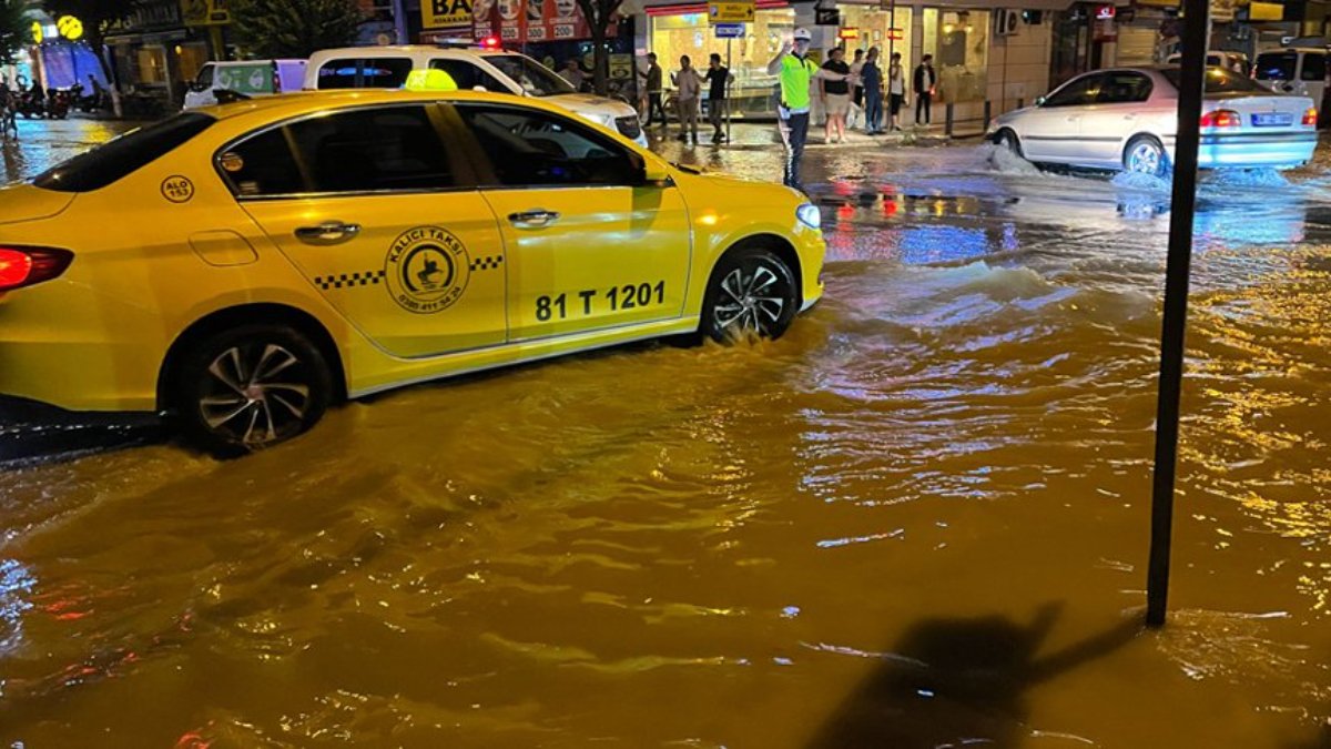 Polis ekipleri çöken yolun çevresinde güvenlik önlemi alırken sürücüler sularla kaplı yolda zor anlar yaşadı.