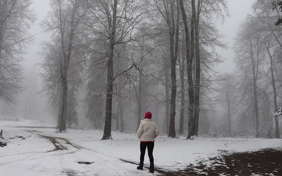 Sinekli Yaylası'na gelen Seda Kaşkır, hafta sonları doğada vakit geçirdiklerini belirterek, "Bu hafta da yaylaya geldik, kar yağışıyla karşılaştık. Kartpostallık görüntüler oluşmuş. Biz de bu anın tadını çıkaralım istedik." diye konuştu.