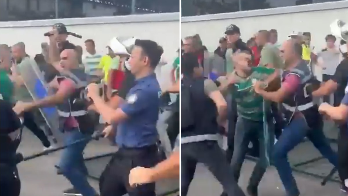 Bursaspor taraftarları stadyuma girmek için bariyerleri aşmaya çalışırken, polis ekipleri olaya müdahale etti. TOMA ve biber gazı kullanılarak kalabalık dağıtılmaya çalışıldı. Olaylar sırasında taraftarların polise taş ve çeşitli yabancı maddeler attığı görüldü. Çıkan arbedede bazı taraftarlar yaralanırken, olay yerine gelen sağlık ekipleri yaralılara müdahale etti.