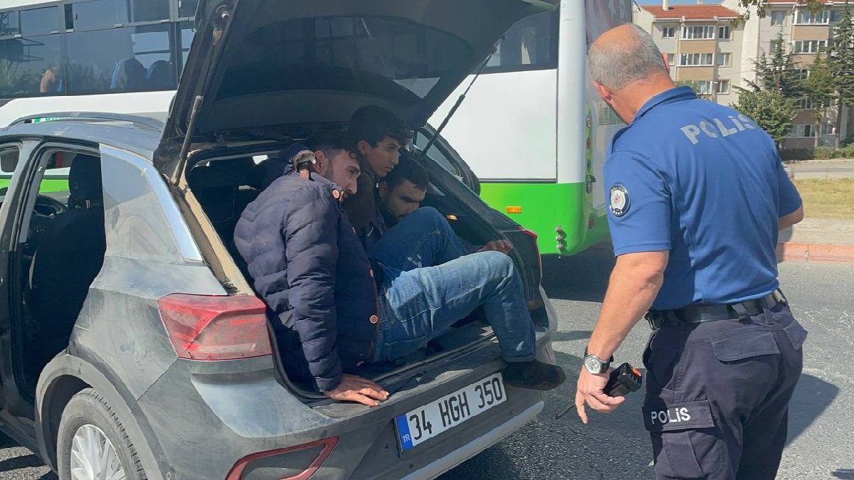 Araçlarda yapılan aramada, Suriye, Fas ve Afganistan uyruklu 45 düzensiz sığınmacı yakalandı. Bazı sığınmacılar araç bagajından çıktı. Aralarında çocukların da bulunduğu sığınmacıların bazılarının ayakkabılarının olmadığı görüldü.