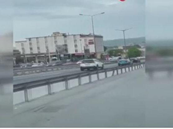 Büyükçekmece E-5'te düğün konvoyundaki magandalar havaya ateş açtı. Trafiği yavaşlatıp havaya ateş eden magandalar cep telefonu kamerasına yansıdı.