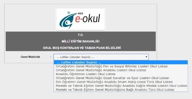Resimde de görüldüğü üzere e okul okul boş kontenjan ve taban puan bilgiler sorgulama işlemleri için ilk olarak sorgualma formunun doldurulması gerekmektedir. Alınmak istenen bilgilere göre seçimler yapılarak online olarak ilgili okulun kontenjan bilgileri alınabilir. Üstelik sadece kontenjan değil, okul taban puan bilgileri de sonuç sayfasında yer almaktadır. Böylece tercihlerde de ilgili bilgiler çok yararlı olmaktadır.E Okul Sisteminin Avantajları Nelerdir?