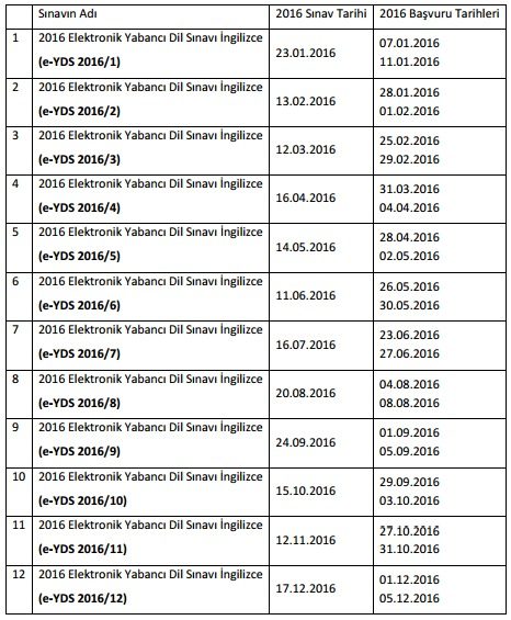 2016 e-YDS SINAV TAKVİMİ