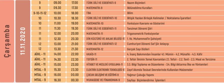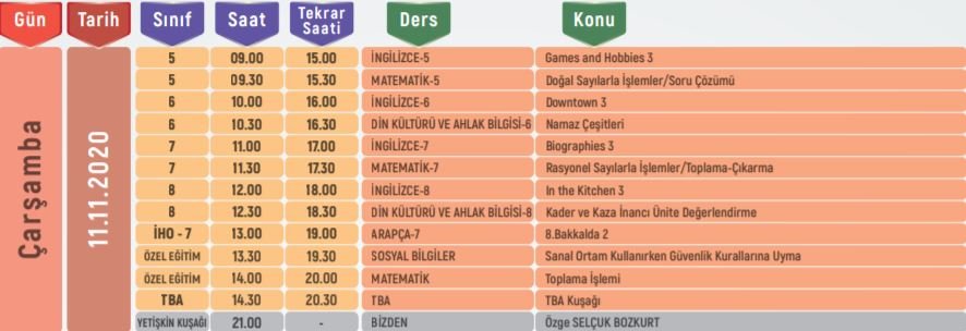 11 KASIM EBA TV DERS PORGRAMI YAYINLANDI