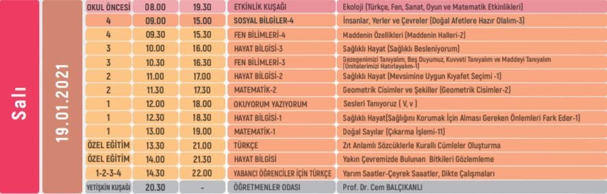 Aşağıdaki linklere tıklayarak tüm günlerin ders programlarına erişebilirsiniz.