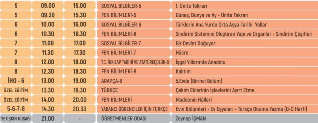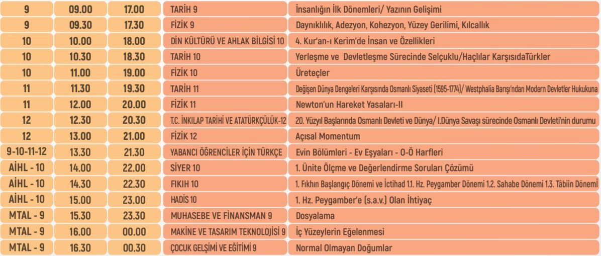 Aşağıdaki linklere tıklayarak tüm günlerin ders programlarına erişebilirsiniz.