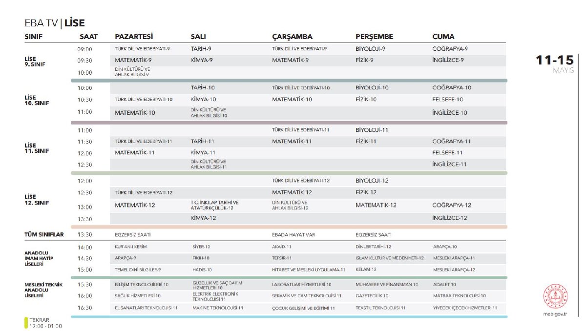 EBA TV DERS PROGRAMI