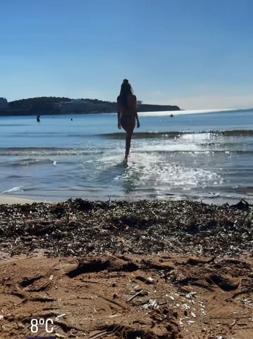 Soğuk havaya aldırış etmeyen Şahin, 8 derece havada denize girdiği anları "Çok rahat, çok profesyonel bir donuş" notuyla yayınladı.