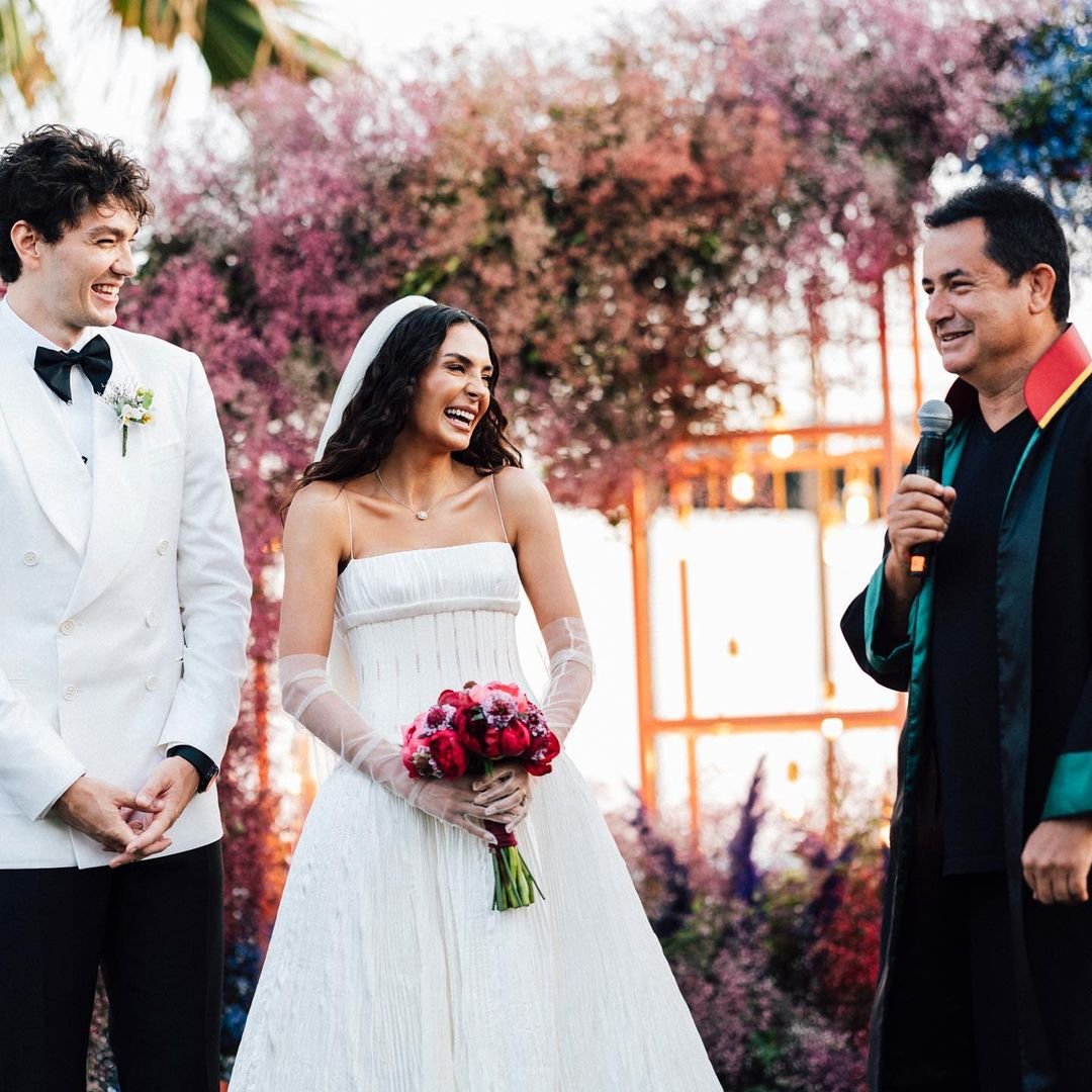 Geçen hafta Makedonya'da kıyılan resmi nikâhın ardından Alaçatı'da gerçekleştirilen temsili nikâhı televizyoncu Acun Ilıcalı kıyarken, Ebru Şahin'in şahitliğini menajeri ve yakın dostu Abdullah Bulut, Cedi Osman'ın şahitliğini ise Okan Can Yantır üstlendi.
