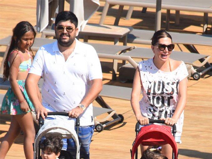 Ebru Yaşar ve Necat Gülseven, önceki gün Göltürkbükü'ndeki Kuum Beach'teydi. Denizin keyfini çıkaran çift, ikiz çocukları Ebrusu ve Hasan Poyraz'la birlikte oldukça