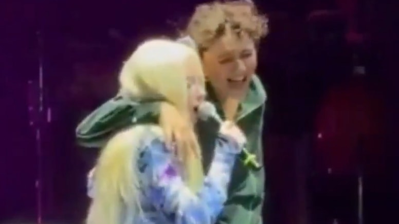 Anne Minguzzi, kucaklayarak sarıldığı Seçkin'e şarkıyı söylediği sırada da eşlik etti.