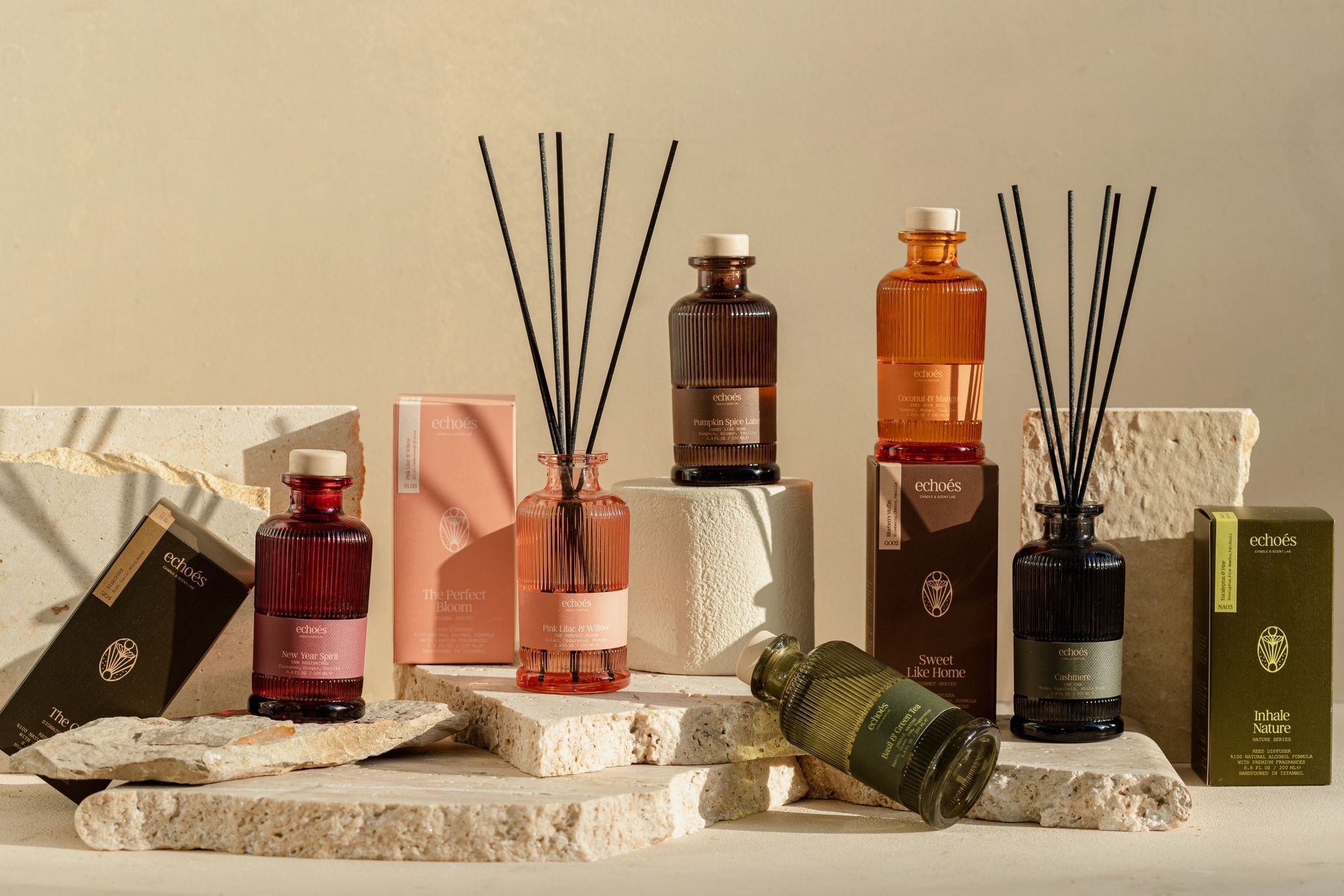 The One, Inhale Nature, The Perfect Bloom, Sweet Like Home, Feed Your Soul, New Beginnings olmak üzere 6 koleksiyon ile 26 farklı koku seçeneği sunan Echoes; çevresel ayak izini en aza indirmek için tüm oda kokuları için yedek şişede yeniden dolum ürünleri de sunuyor.