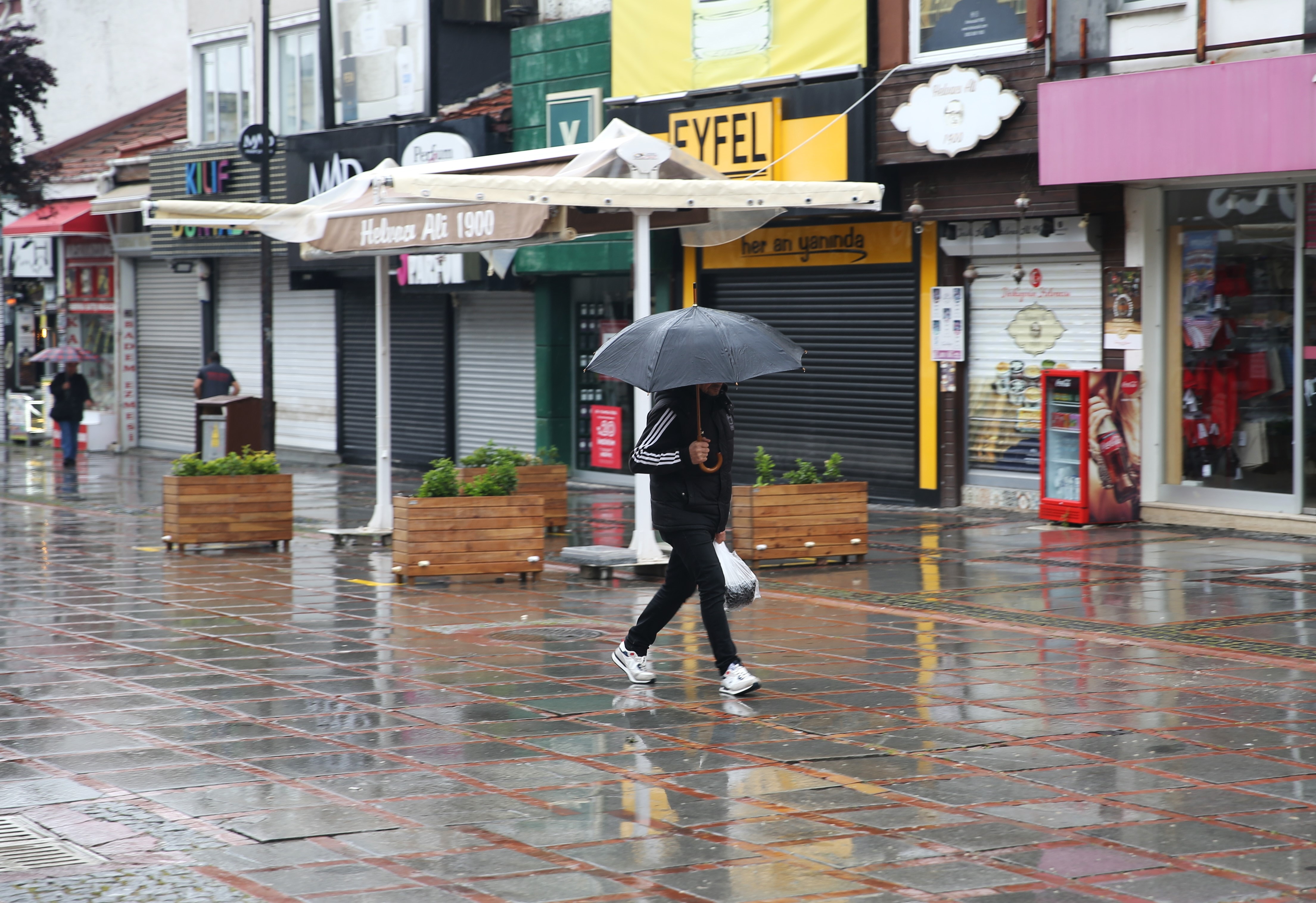 Yağış nedeniyle bazı cadde ve sokaklarda su birikintileri oluştu. Şemsiyesiz yola çıkan yayalar yağmurda ilerlemekte güçlük çekti.