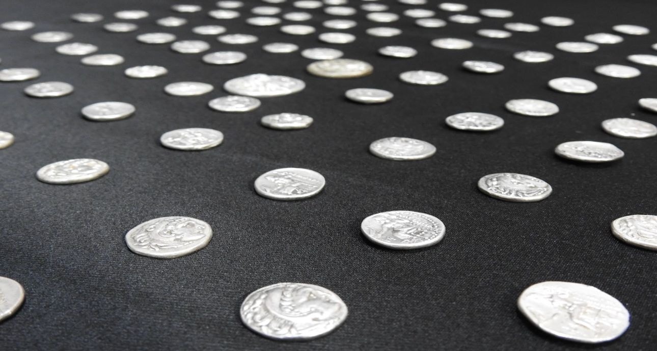 Otomobilde yapılan aramada Helenistik döneme ait olduğu anlaşılan ön yüzünde Büyük İskender'in Herakles tarzı portresi ve arka yüzünde Yunan Tanrısı Zeus figürleri bulunan tarihi eser niteliğinde gümüş sikkeler ele geçirildi.