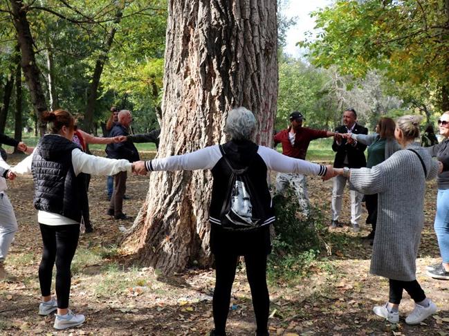 Konuşmaların ardından kent ormanının bulunduğu alanda el ele tutuşanlar insan zinciri oluşturuldu. Protesto, kent ormanında ağaçların temsili olarak korunma amaçlı çevrelenmesiyle sona erdi. (DHA)