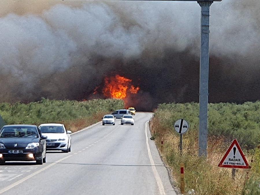 Rüzgarın etkisiyle sahile kadar inen alevler yüzünden denizde olan vatandaşlar denizden çıkıp endişeli gözlerle alevleri izledi. Akçay ve Dalyan arasındaki kara yolunda alevler yüzünden trafik durma noktasına gelirken araçlarından inen vatandaşlar itfaiye ve orman ekiplerine yardıma koştu. Göçmen kuşların uğrak noktası olarak bilinen sazlık alanda çok sayıda canlı türünün de telef olduğu belirtildi.