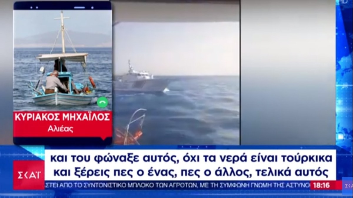 Yunanistan’da yayın yapan Skai TV ve Rodiaki, Türk Sahil Güvenliği'nin Yunan balıkçıya çok yaklaştığını gösteren video görüntüleri yayınlayarak kendi sularını ihlal ettiğini iddia etti.