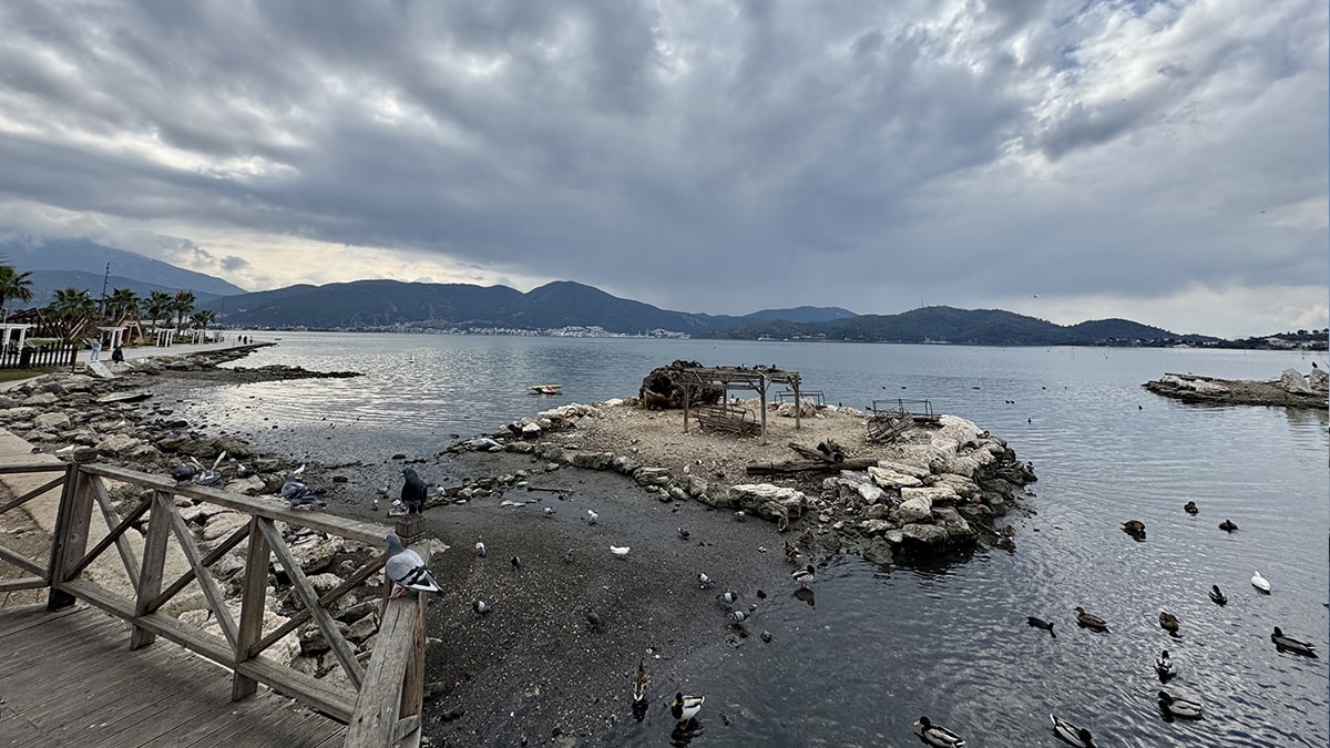 Fethiye'de de körfezde deniz suyunda yaklaşık 2 metre çekilme görüldü. Kıyıya yakın yapay Ördek Adası'nda suyun çekilmesiyle karayla bağlantı oluştu.