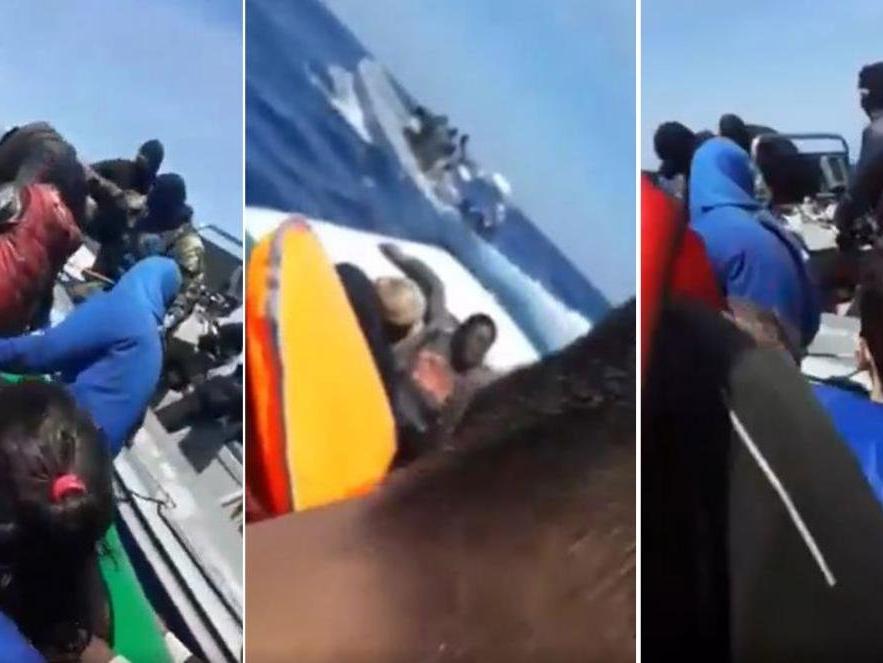 The Times'ın ele geçirdiği görüntülerde balaklavalı (maskeli) iki adam erkek, kadın ve çocukların olduğu plastik bir bota saldırırken görülüyor. Silahlı olduğu görülen adamlar aracın arka tarafındaki motoru sökerek teknenin akıntıya kapılmasına sebep oluyor.
