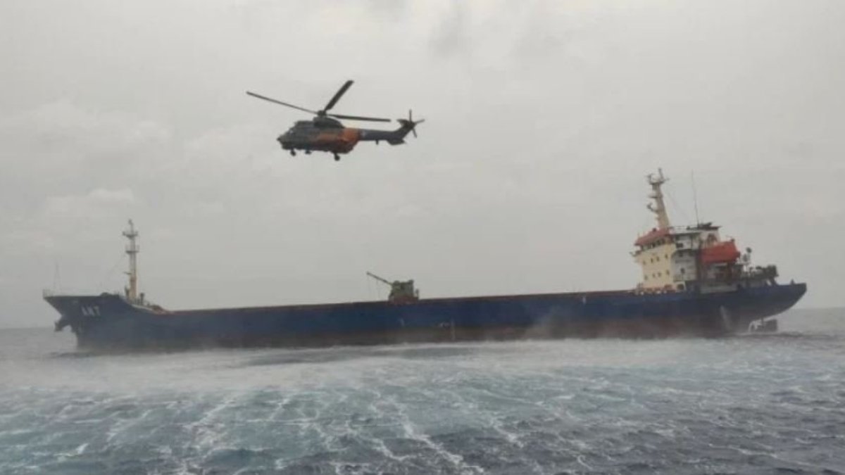 Yetkililer, kuvvetli fırtına ve dev dalgalar nedeniyle geminin su alıp battığı değerlendirmesinde bulundu.