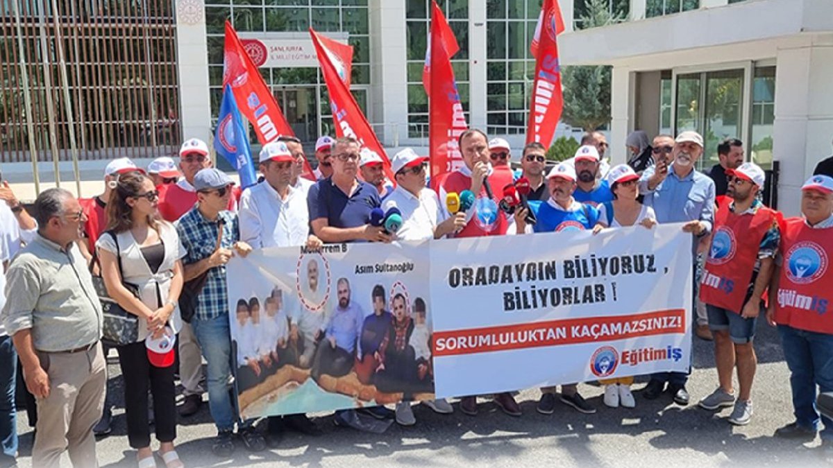 Eğitim-İş Genel Başkanı Kadem Özbay ise Asım Sultanoğlu’nun yerinin müdürlük makamı değil sanık sandalyesi olduğunu savunarak, “Atatürk’ün biz öğretmenlere emanet ettiği gelecek nesiller, sahipsiz değildir. İstismar suçlusu vakıfları savunan ve görevde ağır ihmali bulunan bir kamu görevlisi olan Asım Sultanoğlu’nun ataması derhal iptal edilmeli, bugün milli eğitim tarihimizin en utanç verici atamalarından birine dikkat çekmek, tepki göstermek için buradayız. Yoksulluğu nedeniyle öğrencilerinin çoğunun eğitime aralıksız devam edemediği, çok sayıda öğrencisinin küçük yaşlarına rağmen çalışmak durumunda kaldığı, taşımalı eğitim denen garabet nedeniyle öğrencilerin okullarına ulaşmak için yollarda adeta süründüğü, kız çocuklarının okullaşma oranı açısından en geride olduğu, yani eğitimin zaten kan ağladığı ve acil iyileştirmeler beklediği Şanlıurfa’ya İl Milli Eğitim Müdürü olarak kimin atandığını deşifre etmeyi Eğitim-İş olarak vazifemiz sayıyoruz" dedi.