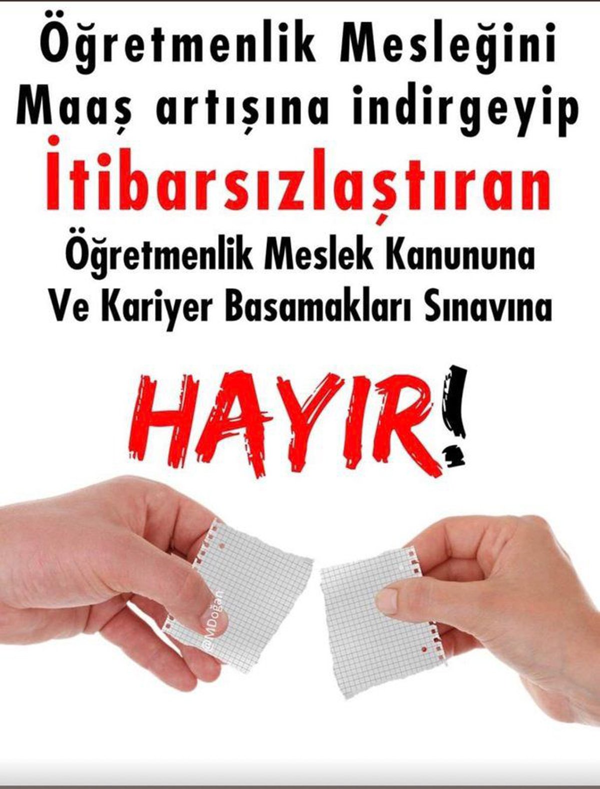 “Öğretmenlik Meslek Kanunu, Uzman Öğretmenlik ve Başöğretmenlik Öğretmenlik sınavları ile cemaatler, sermaye sahipleri ve AKP iktidarı, Atatürk’ün eğitim ordusu öğretmenlere karşı aleni darbe yapıyor. Liyakat ve donanımdan eksik bu eğitim yapılanmasında gerici cemaatler cirit atıyor. Türkiye’nin Atatürk’ün işaret ettiği muasır medeniyetler seviyesine çıkışı, siyasi iktidarca kasıtlı engelleniyor. Türkiye’nin eğitimden, ekonomiye kadar dünya sıralamalarında sonuncu olmasının temel nedeni eğitimdeki gerilemedir.”