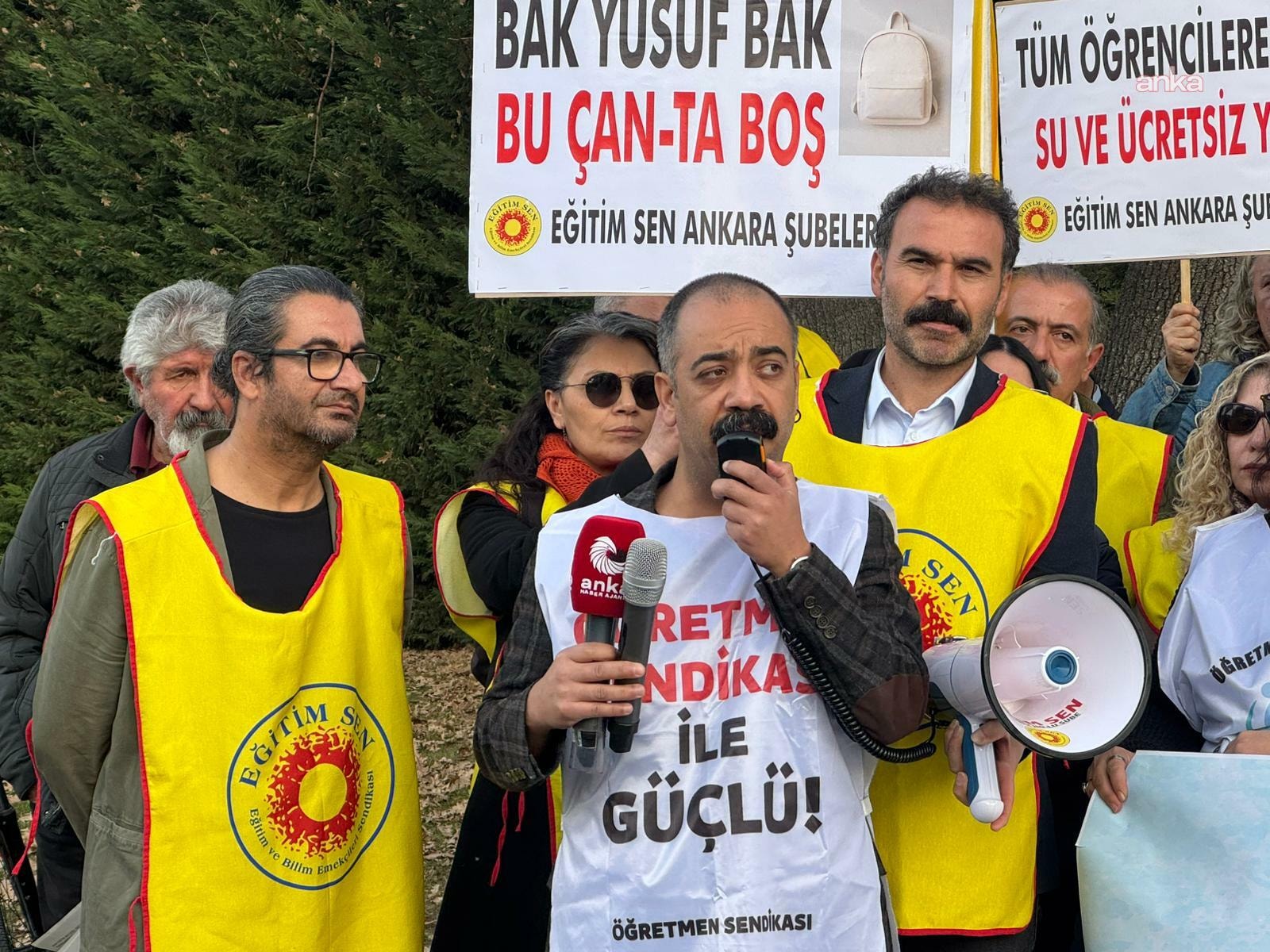 Tepki açıklaması Eğitim-Sen Genel Başkanı Kemal Irmak tarafından okundu.