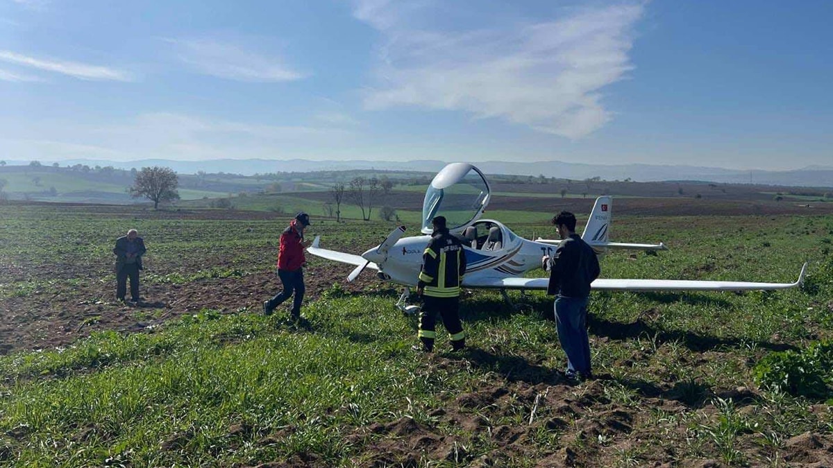 Bursa'nın Yenişehir ilçesinden kalkan eğitim uçağı, Bilecik'te tarlaya zorunlu iniş yaptı. Uçağın arka dikmesi kırılırken, öğrenci pilot yara almadan kurtuldu.
