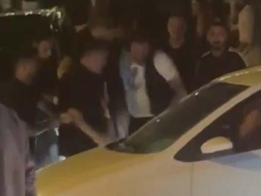 Kimliği öğrenilemeyen kişi, eğlence mekanın önünde tartıştığı grup tarafından dövüldü. O anlar, çevredeki bir kişi tarafından cep telefonuyla kayda alındı.