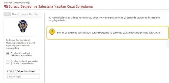 Hizmet tıklandığında ilk olarak e devlet girişi yapılması istenir. Giriş sonrasında ise kişilerin ceza durumu ekranda yayınlanır. Eğer kişiler ceza almamışsa bu konuda bilgi verici bir mesaj yayınlanır. Gib sitesindeki araç trafik cezası sorgulama yazısında da ifade edildiği üzere bu bölümde son 1 yıldaki cezalar görüntülenebilir. İlgili sorgulama için bir örnek ise şöyledir;