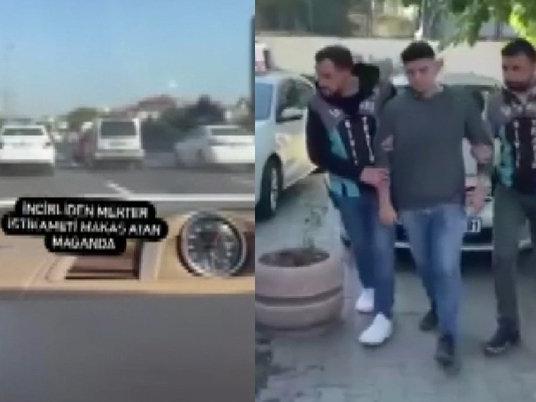 Bakırköy D-100 Güney Yol İncirli mevkiinde geçen pazar günü trafik güvenliğini tehlikeye düşürecek şekilde şerit değiştirerek makas atan sürücünün görüntüleri sosyal medyada paylaşıldı. Görüntüler üzerine harekete geçen polis ekipleri 34 GZS 39 plakalı araç sürücüsünün H.M.K. isimli kişi olduğunu tespit etti.