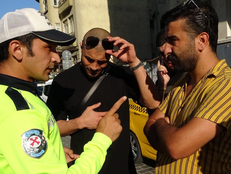 Fotoğraflarının çekildiğini gören polis memuru Türkçe bilen turiste, “İşlem yaptık. Aynı şekilde araç sahibine de cezai işlem uyguladık. Aracını otoparka bağlıyoruz. Bütün işlemleri bitirdik geldi. Bizim fotoğraflarımızı çekmiş. Video kaydı da aldı mı bilmiyorum? Neden fotoğrafımı çekmiş?” dedi.