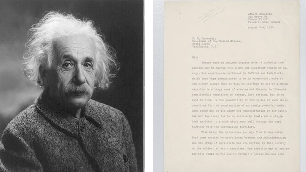 Almanya'nın, Polonya'yı işgal etmesinden birkaç hafta önce yazılan 2 Ağustos 1939 tarihli mektupta Einstein, uranyumun önemli bir enerji kaynağı olabileceğine dikkati çekiyor. Mektupta, büyük kütlelerdeki uranyumun nükleer zincirleme reaksiyonu oluşturabileceğini belirten teorik fizikçi, bu reaksiyonun bomba yapımında kullanılabileceğini vurguluyor.
